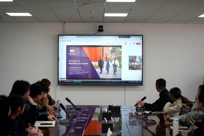 张伟强重点介绍了华威大学法学学科的国际化特色与学术优势,强调其通过特色教学体系助力学生拓展学术视野,构建多元发展路径。Andrew Johnston详细解读LLM项目,指出该项目采用小班化教学,课程设置灵活多元,注重理论与实践结合,通过学术研讨、模拟法庭等实践环节提升学生综合能力。在互动环节,Andrew Johnston就入学要求、申请流程及项目安排等问题与师生深入交流,为有意向赴英深造的学生提供了精准指导。