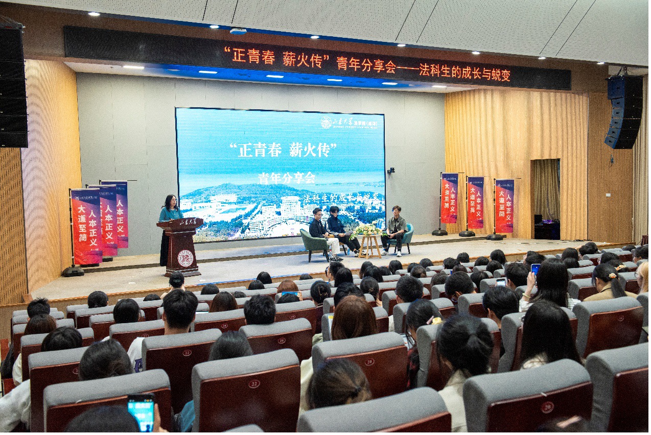 为搭建优秀校友与在校生交流平台,拓宽学术视野,深化自我认知,发挥优秀校友的榜样引领作用,5月18日,菲律宾欧博游戏官网(威海)举办“法科生的成长与蜕变”青年分享会。2017级本科生胡明昊、2018级本科生许新冉、2019级本科生王允高三位校友作为嘉宾出席分享会,学院JESSUP赛队指导教师、本科生班主任方芳担任与谈人,分享会吸引全校近300名学生齐聚一堂,现场座无虚席,反响热烈。
