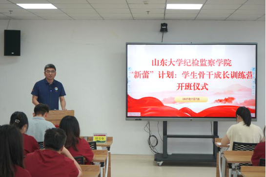 为夯实学生骨干理想信念根基,提升综合素质能力,纪检监察学院举办2025年“新蕾计划”学生骨干成长训练营。训练营开班仪式于7月7日下午举办,学院党委副书记侯丽娜、原团委书记时华忠、全体辅导员出席活动,学院团学组织骨干、班团骨干参加活动。仪式由学院团委书记仪富强主持。