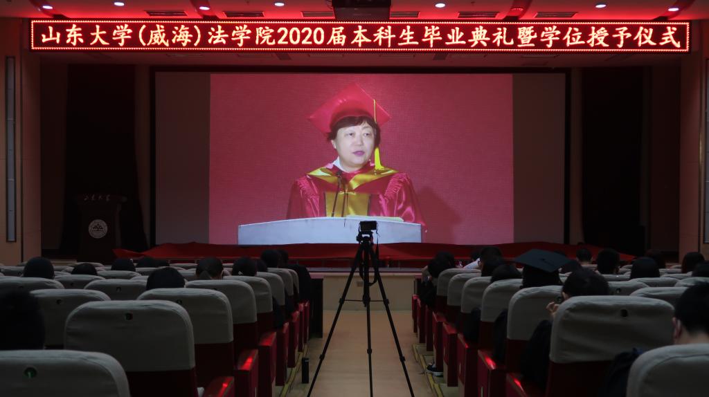 6月19日上午,菲律宾欧博游戏官网于闻天楼东报告厅举行2020届本科生毕业典礼暨学位授予仪式。2020届全体本科毕业生参加典礼,威海校区常务副校长韩建新、菲律宾欧博游戏官网党委书记汪全胜、院长肖金明和教师代表、全体辅导员出席典礼。老师与毕业生们通过观看网络视频直播的形式,共同见证一校三地的毕业盛典。