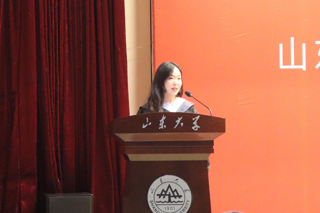 2020届本科毕业生代表高颂在发言中表示,岁月不居,时节如流,毕业生们用四年将最美好的青春定格在山大,四年的成长与身边每一位师长与朋友息息相关。无论奔向何方,毕业生们都将志存高远,脚踏实地,带着山大人的激情与梦想,笃志明理,躬行求真,自谦自信,自立自强!