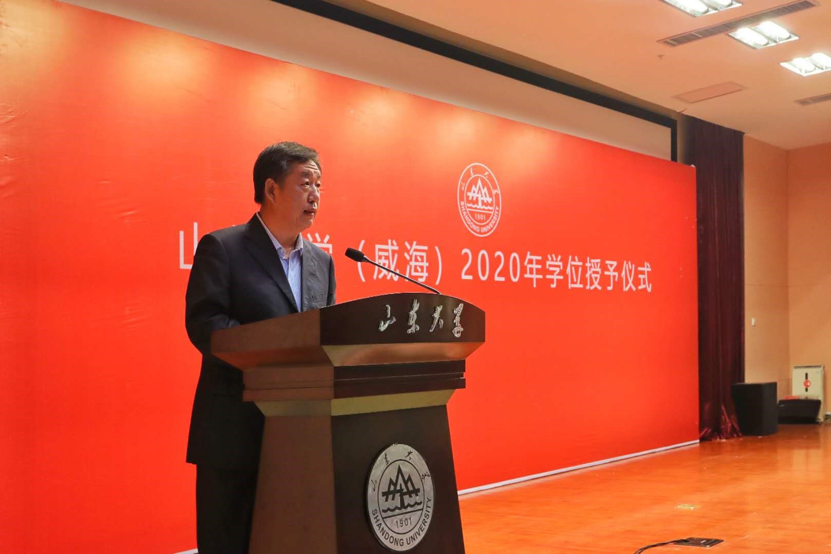 肖金明院长在致辞时与毕业生同学一起致谢家庭和学校,致敬疫情防控中的逆行者!希望同学们以人本精神和正义价值定义生活定位未来定向人生,悟透山大“家风”和博大胸怀,铭记临别赠言,擎起威法旗帜,崇实敬业,知行合一,倾心倾力倾己所能,传递山大精神,延伸威法价值,让整个社会闪耀着人本正义的光芒!最后代表学院祝贺同学们学业圆满,祝福毕业生健康平安、行稳致远!