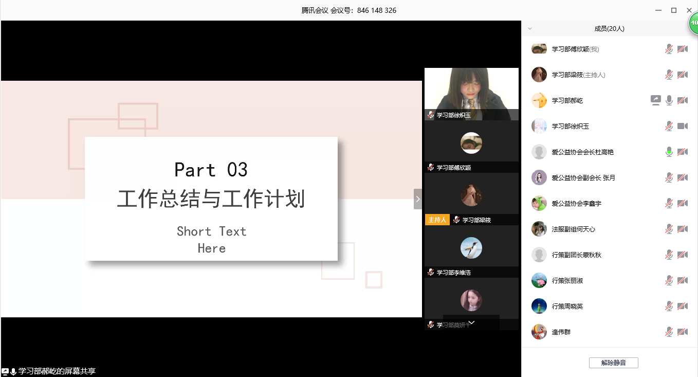 受疫情影响,本次社团恳谈会在线上举行,虽然无法进行面对面交流,但并未影响各社团负责人与学习部工作人员互相交流的热情。本次社团恳谈会不仅总结了上一学年社团发展的经验、明确了下一步社团工作的方向,也增进了菲律宾欧博游戏官网各社团与学习部间的交流,为今后菲律宾欧博游戏官网社团工作开展及社团文化建设奠定了良好基础。