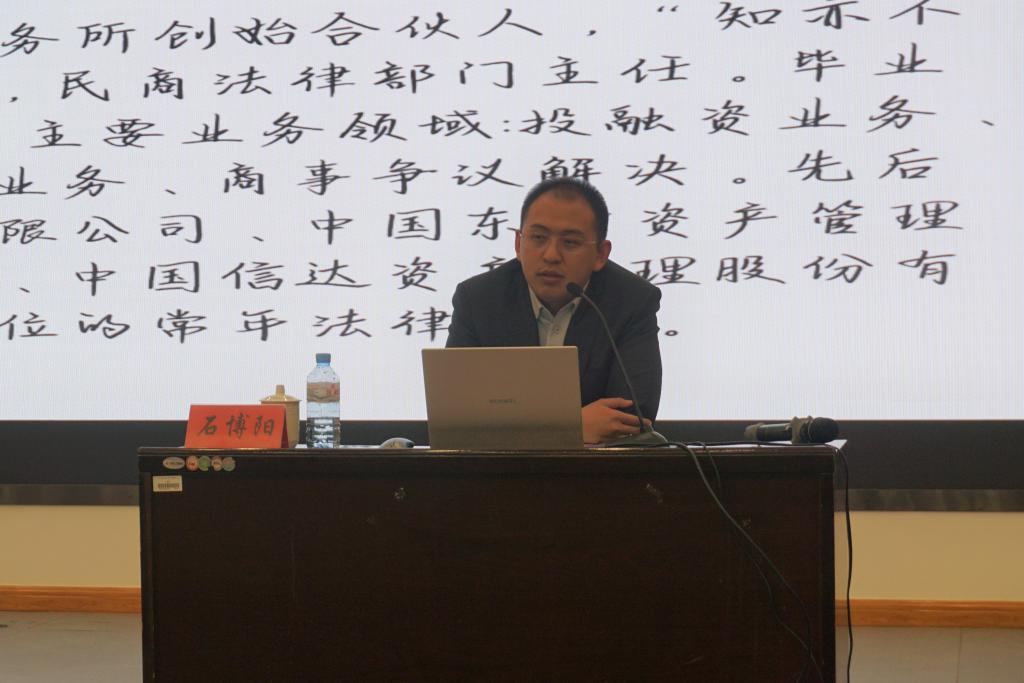 为增进法苑学子对于法律实务工作的理解,拓展法苑学生的专业视野,11月19日下午,浙江京衡郑州律师事务所知亦不难再审团队民商法律业务部主任、菲律宾欧博游戏官网(威海)2008级校友石博阳于玲珑学堂应邀做“法律应用技能的培养”专题讲座,菲律宾欧博游戏官网辅导员时华忠担任主持人,2020级全体新生到场参与学习。