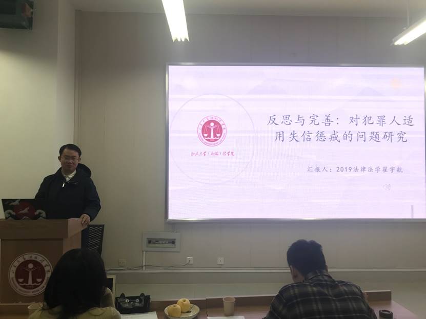 作为活动创办者,吴睿佳首先对“青年学术工坊”的举办初衷和研讨规则做了介绍,指出“青年学术工坊”是一个自由交流的学术平台,旨在让在校学生能够在充分的研讨过程中开阔思路、积累经验,进一步完善自身科研成果。第一期研讨主题定为“新时代的治理问题及其法治回应”,主要目的是对当前出现的一些亟待回应的新问题进行法学角度的阐释和解答。围绕这一主题,高烎寅、翟宇航、甘缘先后进行了题为《“野生动物”概念的法律解释——从<全面禁食野生动物决定>展开》《反思与完善:对犯罪人适用失信惩戒的问题研究》《论原因自由行为的归责基础——基于“吸毒后犯罪”案件司法裁判的实证考察》的主题报告。报告结束后,所有参会人员对报告人的论文进行了全面、细致的研讨,提出了大量富有建设性的修改建议,为报告人完善论文提供了有益帮助。
