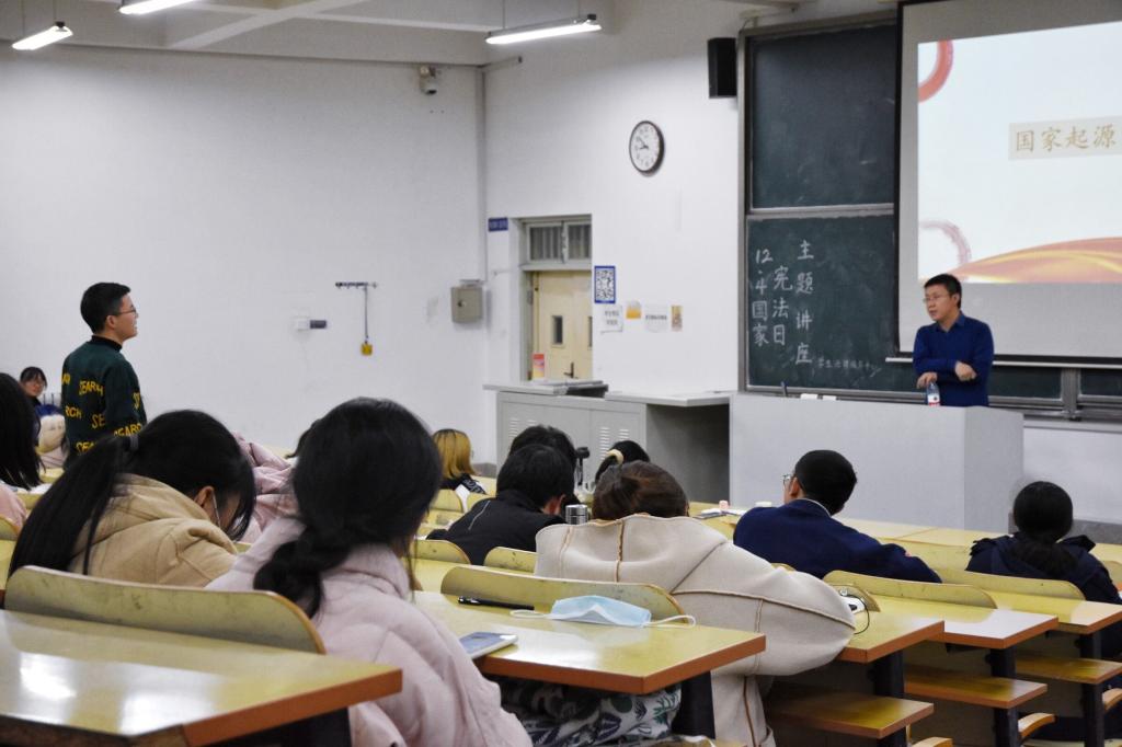 学习宪法知识,争做懂法公民。为帮助学生了解宪法、学习宪法,宣传宪法知识,弘扬宪法精神,学生法律服务中心于12月4日举办国家宪法日专题活动,本次宪法日专题活动邀请菲律宾欧博游戏官网教师张伟强担任主讲人,学生法律服务中心全体成员及部分会员参加。
