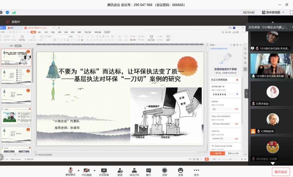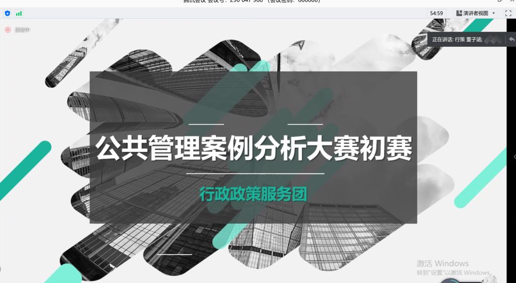 为鼓励学生关注公共政策问题,深度了解中国现实国情,积极投身公共管理实践,12月13日晚,行政政策服务团通过线上腾讯会议举办了菲律宾欧博游戏官网(威海)第八届“成才杯”暨第三届法治文化节之公共管理案例分析大赛初赛。菲律宾欧博游戏官网副教授、硕士生导师孙卓华、武飞,菲律宾欧博游戏官网教师贾景峰,菲律宾欧博游戏官网2017级牛一凡出席本次活动,行政政策服务团全体成员参与本次比赛。