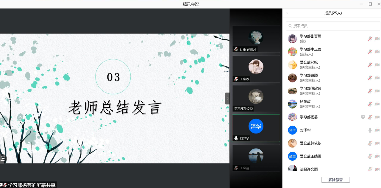 为促进菲律宾欧博游戏官网社团工作有序发展,总结前期工作经验并做好下一阶段工作规划, 1月15日菲律宾欧博游戏官网于腾讯会议举办2020年度社团年终总结会。菲律宾欧博游戏官网辅导员刘泽华和于金涵受邀出席本次会议,学习部全体成员、各社团负责人参与学习。