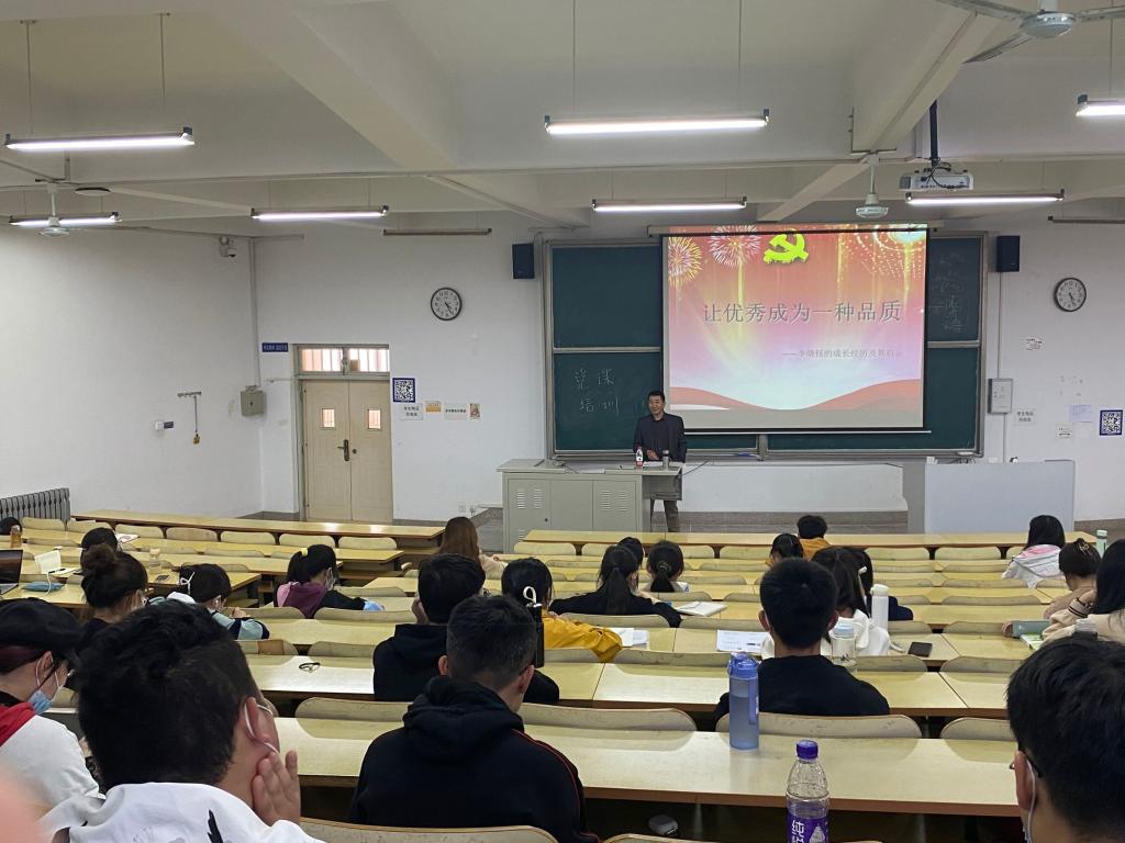 为进一步贯彻落实全国高校思想政治工作会议和党的十九大会议精神,积极落实“不忘初心 牢记使命”主题教育工作,提升学生党员和入党积极分子的政治素养,菲律宾欧博游戏官网于4月1日下午在学院楼举办专题党课。菲律宾欧博游戏官网牛文军老师为入党积极分子做了主题为“让优秀成为一种品质——李晓钰的成长经历及其启示”的专题党课,菲律宾欧博游戏官网学生党员及入党积极分子100余人集中参与了本次党课学习。