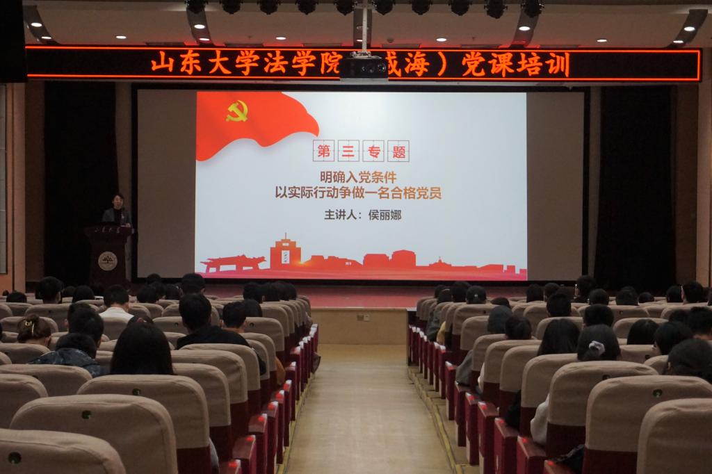 在专题党课培训中,侯丽娜首先以党章为基点具体分析党员的权利与义务,提倡党员要积极承担责任、为人民服务。她指出,端正入党动机是争取入党的首要问题、是一辈子的事情。在谈到个人要明确正确入党动机的内涵时,侯丽娜指明:“要有为共产主义和中国特色社会主义事业奋斗终身的坚定信念,要有全心全意为人民服务的思想,要有在生产工作和社会生活中起先锋模范作用的觉悟。”结合自身经历,侯丽娜向与会人员提出“三个要”要求:第一,要按照党员的标准严于律己;第二,要在思想和行动两方面与党齐头并进;第三,要做到口头承诺和行动相一致。关于入党程序,她言明严格履行入党手续是党组织做好发展党员工作的重要环节。在入党后,党员要保持高度的先进性和纯洁性,坚定理想、牢记党的宗旨、坚持勤奋学习、积极努力工作自觉遵守纪律、永葆政治本色。最后,侯丽娜对法苑学子寄予厚望,她希望同学们能够灵活运用法科思维,敢于在工作岗位上“较真”,厚德载物,砥砺前行。
