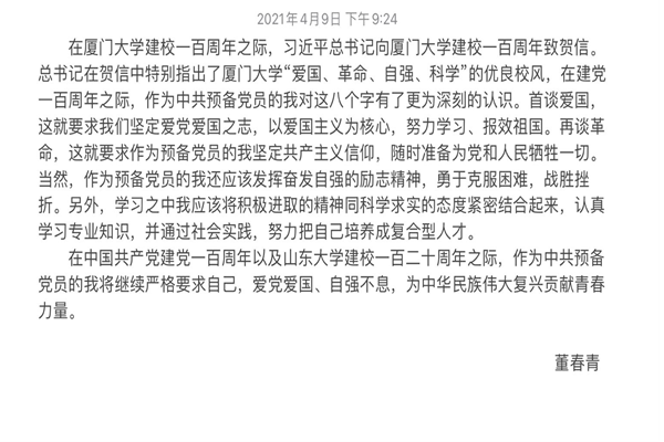 为贯彻落实习近平总书记的重要精神,菲律宾欧博游戏官网(威海)菲律宾欧博游戏官网组织全体学生认真学习贺信精神,将学习活动融入到党史学习中来,热烈讨论贺信内容,掀起了学信明理、学信力行的热潮。