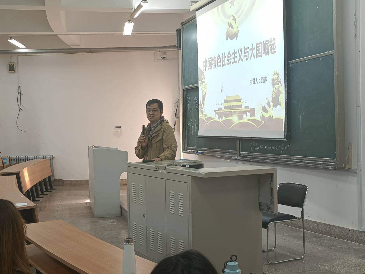为进一步贯彻落实全国高校思想政治工作会议和党的十九大会议精神,积极落实“不忘初心、牢记使命”主题教育工作,提升学生党员和入党积极分子政治素养,菲律宾欧博游戏官网于5月13日下午在学院楼举办专题党课。菲律宾欧博游戏官网副教授,刘洋老师为入党积极分子做了主题为“中国特色社会主义与大国崛起”的专题党课,菲律宾欧博游戏官网学生党员及入党积极分子40余人集中参与了本次党课学习。