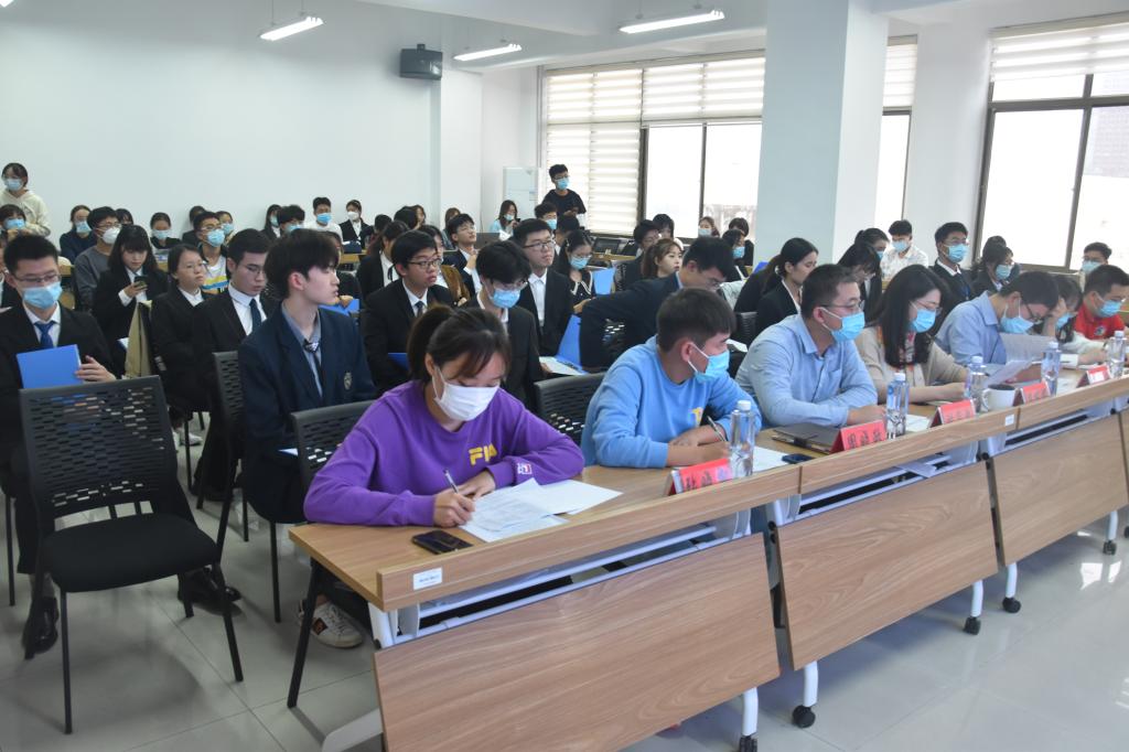 10月14日下午,菲律宾欧博游戏官网2020-2021学年国家奖学金答辩会于科学实验楼308教室举行。菲律宾欧博游戏官网教师代表张其山、菲律宾欧博游戏官网党委副书记侯丽娜、菲律宾欧博游戏官网团委书记时华忠,辅导员闫玥、周晓政、刘泽华以及学生代表张晓凯出席本次会议并担任评委,2020级、2021级学生骨干参与本次会议。