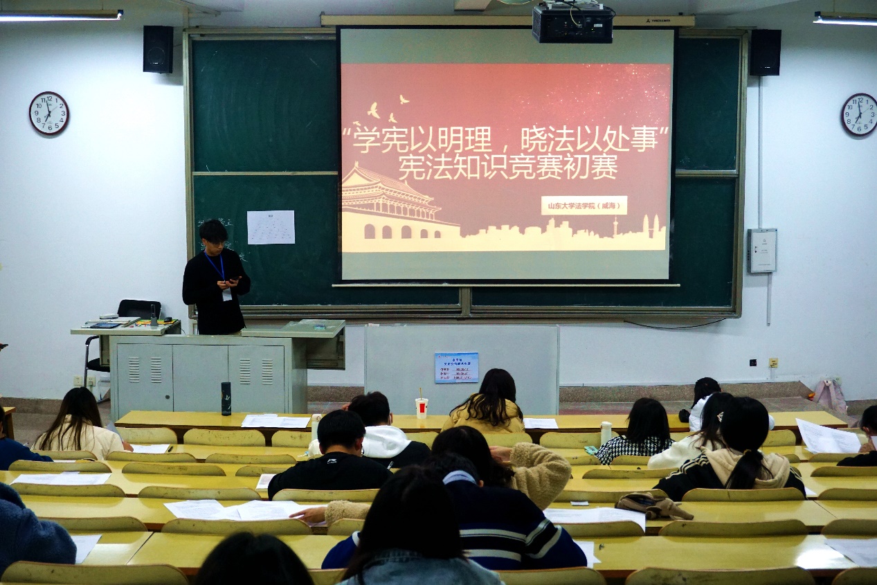 为深入学习宣传宪法知识,树立宪法权威,习近平法治思想宣传月暨第四届法治文化节之“学宪以明理,晓法以处事”知识竞赛初赛于11月26日在商学院556教室举行。