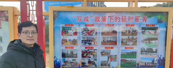 郭云尹与政教处副主任吴欢进行访谈。吴欢表示,“双减”意味着“双增”,减少学生课后学习量,就要提升教学质量;减少了学生们的压力,就不得不多增加老师们的一点压力,要求他们认真备课,参与各类教育局所提供的培训,按层级安排作业等等。通过对在职教师的调查,郭云尹了解到,课后延时服务在一定程度上解决了家长无暇照顾、辅导孩子的难题,但是迫于升学压力,部分家长仍会自主购买学习资料习题、利用线上资源来协助孩子学习。