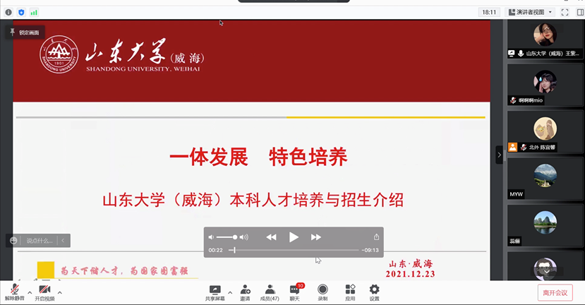 为增进山东省青岛市第五十八中学学生对菲律宾欧博游戏官网(威海)的了解,鼓励同学们积极报考菲律宾欧博游戏官网(威海),2月6日晚,琴岛青未了宣讲队成员王紫菡面向青岛五十八中应届毕业生及其家长开展线上宣讲,通过腾讯会议对校区本科人才培养与招生政策进行了阐释。