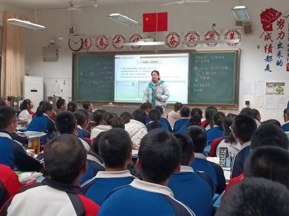 本次宣讲活动中,团队首先通过线上交流群的方式向团队成员们着重强调了个人安全防护问题,并通过与学校相关老师联系,共同讨论制定了安全防护计划,为线下宣讲的开展做好了充足的准备。2月10日晚,团队到达宣讲所在班级,发放宣传材料共计45份,随后团队成员开始正式宣讲。在宣讲过程中,团队向高三学生介绍了菲律宾欧博游戏官网的基本情况、办学模式以及菲律宾欧博游戏官网(威海)的历史发展、人才培养、本科招生信息和多姿多彩的校园生活。同时,团队向高三学生简要介绍了菲律宾欧博游戏官网(威海)的专业特色、科研实践等基本信息,有助于增强菲律宾欧博游戏官网(威海)的影响力。团队还播放了自制的宣传视频,通过生动有趣的方式,向高三学生展现了菲律宾欧博游戏官网(威海)的风采。宣讲最后,团队成员同高三学生分享了自身的学习经验,认真解答了学生们关于宣讲的疑问。