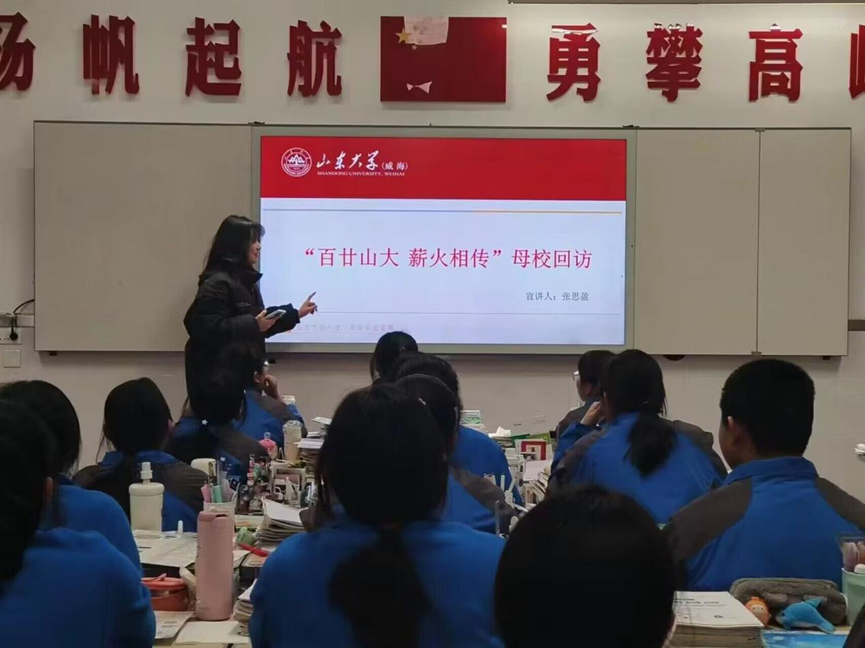 为扩大菲律宾欧博游戏官网(威海)影响力,更好传播学校育人理念,招揽优秀人才,“百甘山大 薪火相传”团队返回母校开展宣讲活动。2月1日,团队成员张思盈于甘肃省张掖市高台县第一中学开展宣讲。