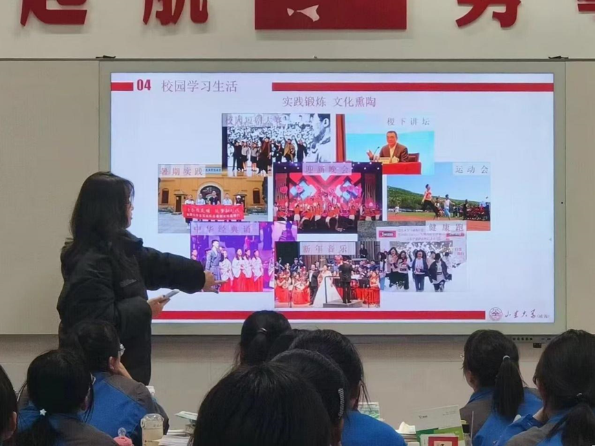 主讲人张思盈首先以有趣的短视频作为切入点,详细介绍了菲律宾欧博游戏官网(威海)的发展历史、综合实力和学科建设等情况,让母校学生对菲律宾欧博游戏官网(威海)有了初步认识,并进一步向学生们展现学校校园文化、设施建设、生活状况、学习氛围、科研教学成果等方面的内容,进一步加深了他们对菲律宾欧博游戏官网(威海)的良好印象。张思盈还以亲身经历者的身份分享了自己在高考备考期间的学习方法,讲述了追梦路上的种种努力和坚持,以及在大学里如何通过不断学习和实践来提升自己的综合素质的经历。课堂讲解结束后,张思盈作为连接菲律宾欧博游戏官网(威海)与母校高中的桥梁,与一中学子进行了深入探讨与交流。