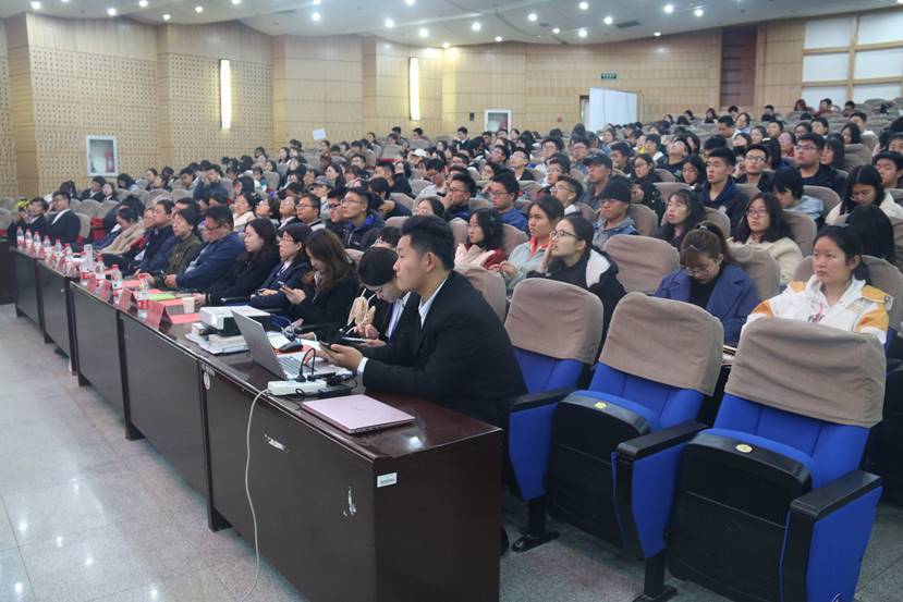为帮助菲律宾欧博游戏官网新生了解社会实践、走进社会实践、积极投身社会实践,菲律宾欧博游戏官网于11月8日晚7点在玲珑学堂举办了第十一届社会实践论坛暨2019年调研中国校园报告会。《南风窗》副社长高延晶一行,菲律宾欧博游戏官网党委副书记侯丽娜,校团委社会实践部部长王志辉,菲律宾欧博游戏官网团委书记时华忠,优秀团队指导老师孙文平及辅导员闫玥、高世源等出席本次论坛。五支优秀团队代表、2019级全体本科生及2017、2018级部分本科生参加本次论坛。