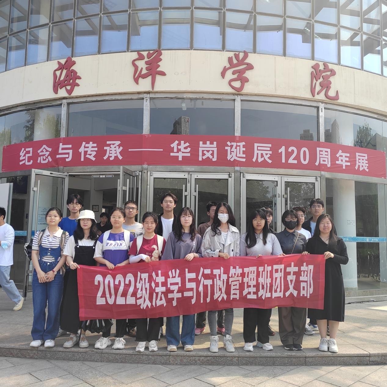 为深入开展学习贯彻习近平新时代中国特色社会主义思想主题教育,认真贯彻落实习近平总书记关于教育的重要讲话精神,6月9日上午,2022级法学与行政管理班学生在威海校区海洋学院一楼大厅集体参观华岗诞辰120周年展。