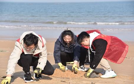 该活动分为前期宣传、分类净滩和数据统计三个阶段。活动前期,爱公益协会通过QQ和微信公众号等平台进行宣传,让同学们认识到海洋净滩活动的目的和意义,鼓励同学们积极参与并招募志愿者。11月14日早上8:30,爱公益协会全体志愿者乘车到达威海成山林场海域,清点人数后快速与诺和悦然公益服务中心负责人对接并开展净滩活动。在负责人的指导下,志愿者们学习了垃圾分类知识并进行了断面划分,随后便开始捡拾垃圾。所有志愿者不畏炎日,忙碌在海滩各处分类收集海洋垃圾,大到塑料泡沫、废弃渔网,小到烟头、瓶盖,志愿者们都一一捡拾,展现了校区同学对海洋环境的保护意识。活动后期,志愿者们进行了垃圾数据统计并共同合影。