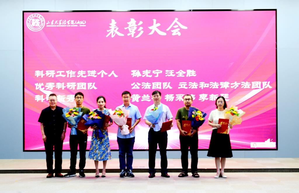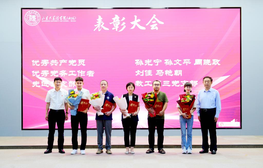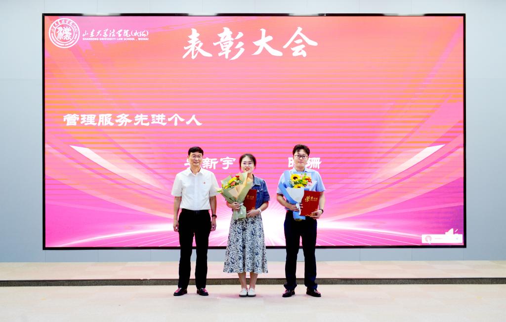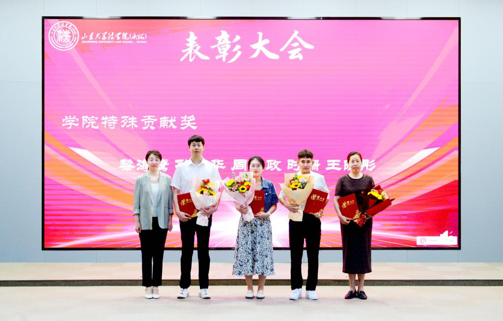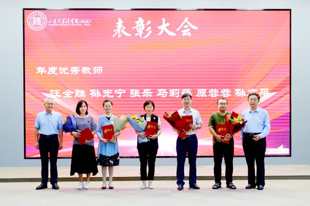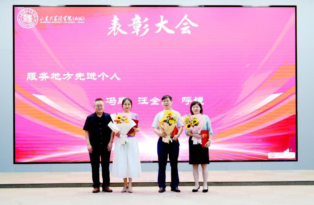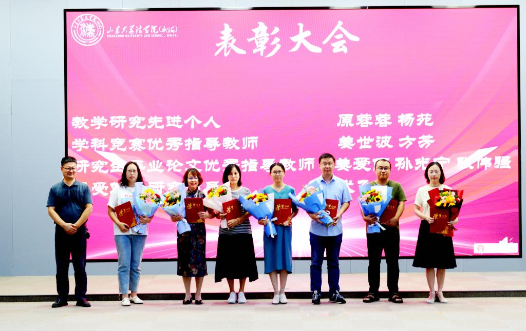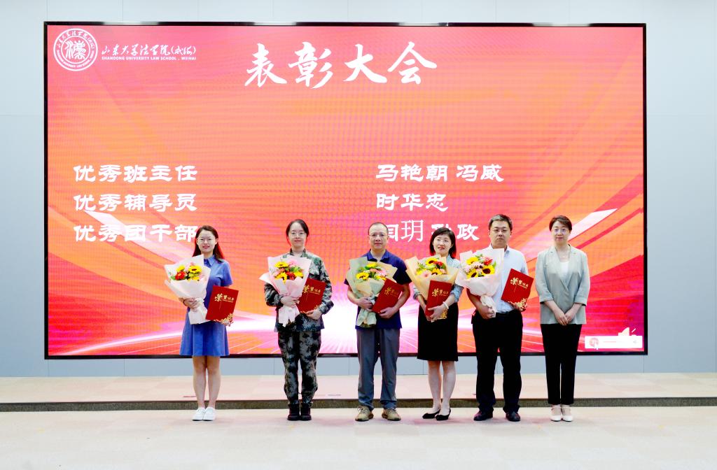 表彰大会上,校区副校长肖金明、特聘教授刘松山和学院各分管领导为获奖集体代表、教师颁发荣誉证书,学生代表为获奖教师们献花,并合影留念。表彰过程中请获奖教师代表原蓉蓉、黄兰松、冯威、刘佳四位老师分享感言,他们首先感谢学院对工作的帮助和肯定,并分享了工作中心得,表示今后要继续以为党育人、为国育才为己任,心怀“国之大者、党之大计”,在思想引领、教育教学、学生成长成才方面努力工作,推动学院各方面工作更好更快发展。