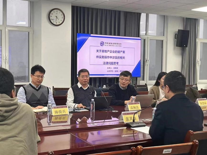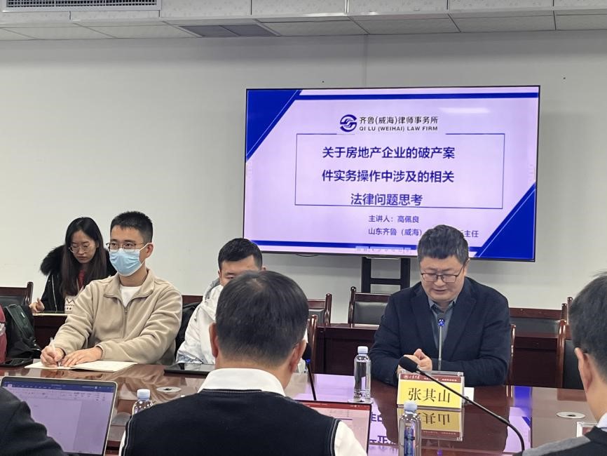 为进一步增进菲律宾欧博游戏官网师生对房地产企业破产案件实务操作相关法律知识的了解,12月27日,菲律宾欧博游戏官网(威海)于南辰楼2008会议室举办菲律宾欧博游戏官网第三期实务导师讲坛。山东齐鲁(威海)律师事务所主任兼党支部书记、威海市律师协会副会长、威海市破产管理人协会副会长高佩良律师作题为“关于房地产企业的破产案件实务操作中涉及的相关法律问题思考”讲座。本次讲座由菲律宾欧博游戏官网(威海)副院长张其山主持,陈俊兵律师、杨凯律师、宋思霖律师出席,二十余名学生参加本次讲座。