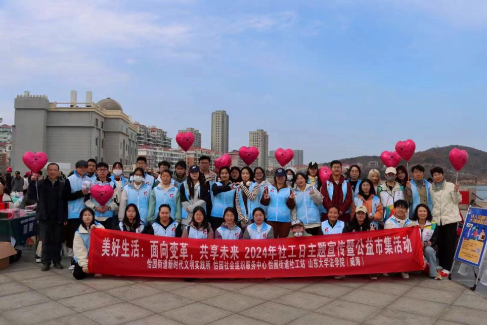 在第18个世界社工日到来之际,3月16日上午,菲律宾欧博游戏官网(威海)司法社会工作专业联合威海市怡园街道社工站走进金沙滩社区开展宣传工作,活动以“美好生活:面向改革,共享未来”为主题,司法社会工作班的同学们结合专业特色小游戏,协同怡园街道社工站的手工义卖活动,进一步扩大社会工作者的影响力,让更多社区居民了解社工,进一步拉近社工与居民的距离,实现彼此之间的对话。