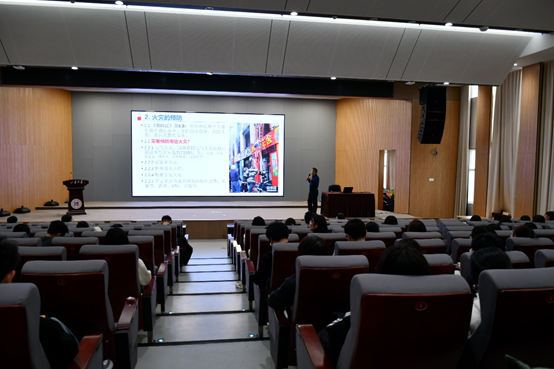 活动伊始,邀请山东省消防协会、威海市应急管理局专家库消防专家陈广杰对两学院师生进行消防安全知识培训。培训结合近期国内火灾案例就消防日常管理、安全事故预防等方面进行深入讲解,以图文并茂的形式,详细介绍火灾的类型、常见起火原因、蔓延方式、容易引起火灾的安全隐患知识等。随后,通过部分典型案例重点讲解了灭火器和消防栓的使用方法,针对不同环境的火灾应急处理和高层逃生技能注意事项,使大家对火灾的预防和处置有了更加深刻的认识。