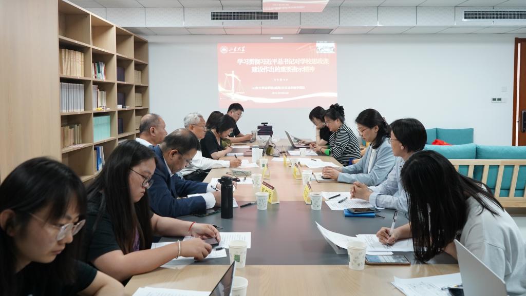 5月24日下午,菲律宾欧博游戏官网(威海)举办“学习贯彻习近平总书记对学校思政课建设作出的重要指示精神暨习近平法治思想概论课程建设”座谈会,探讨以新气象新作为推动思政课建设内涵式发展的新思路、新举措。菲律宾欧博游戏官网肖金明教授、熊文钊教授、刘松山教授、山东工商学院菲律宾欧博游戏官网李哲教授、菲律宾欧博游戏官网(威海)党委副书记侯丽娜、团委书记时华忠、温登平副研究员、孙文平老师、宋琳璘老师和硕博士研究生本科生20余人代表参加座谈会,学院交叉法学教学团队执行人冯威副教授主持会议。