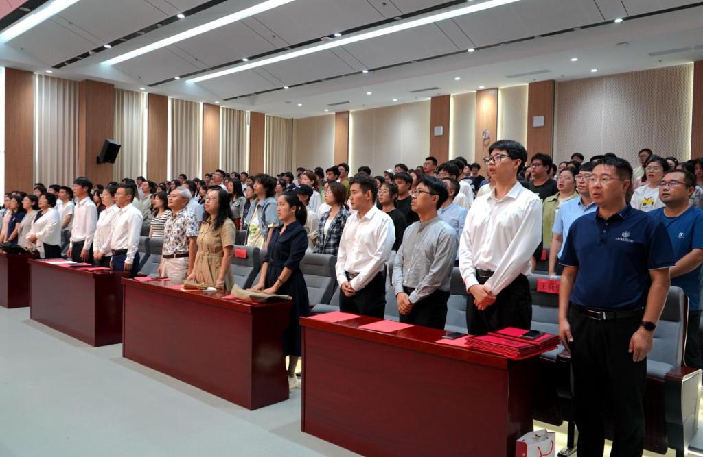 表彰大会在雄壮的国歌声中拉开帷幕。党委书记吴丙新、党委副书记侯丽娜、副院长张伟强分别为党建类、管理服务类、教学科研类奖项获奖人员颁奖。