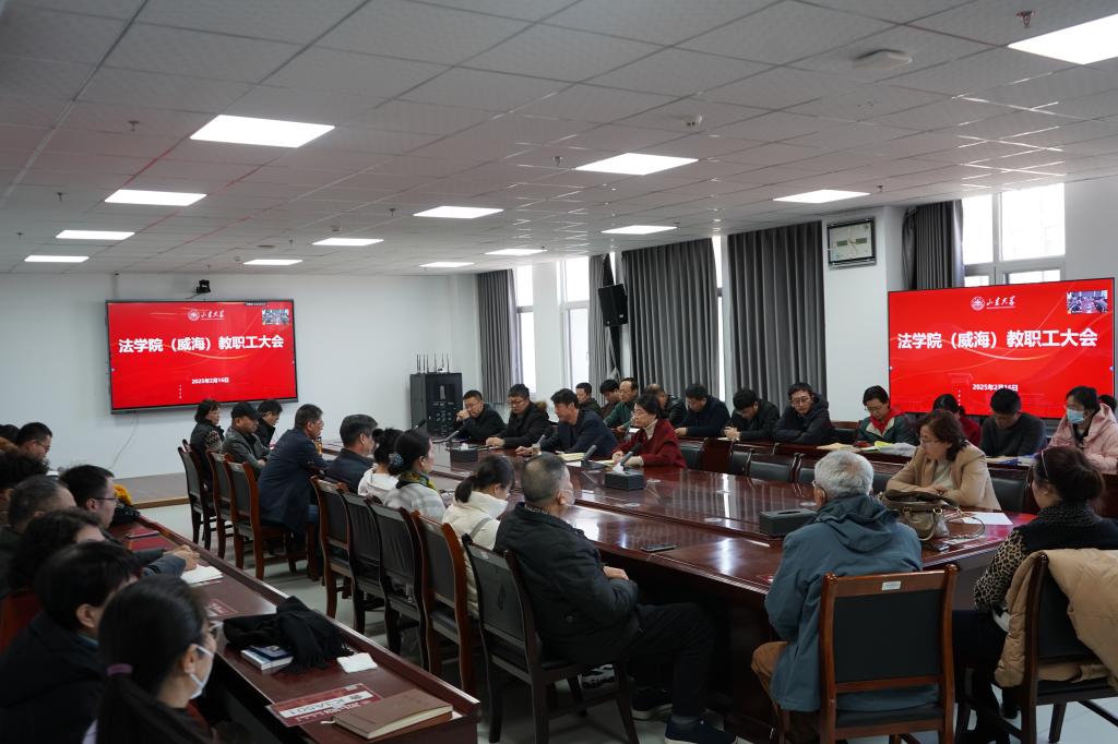 2月16日下午,菲律宾欧博游戏官网(威海)召开全体教职工大会。会议由党委书记吴丙新主持,学院领导班子成员、全体教职工参加会议。