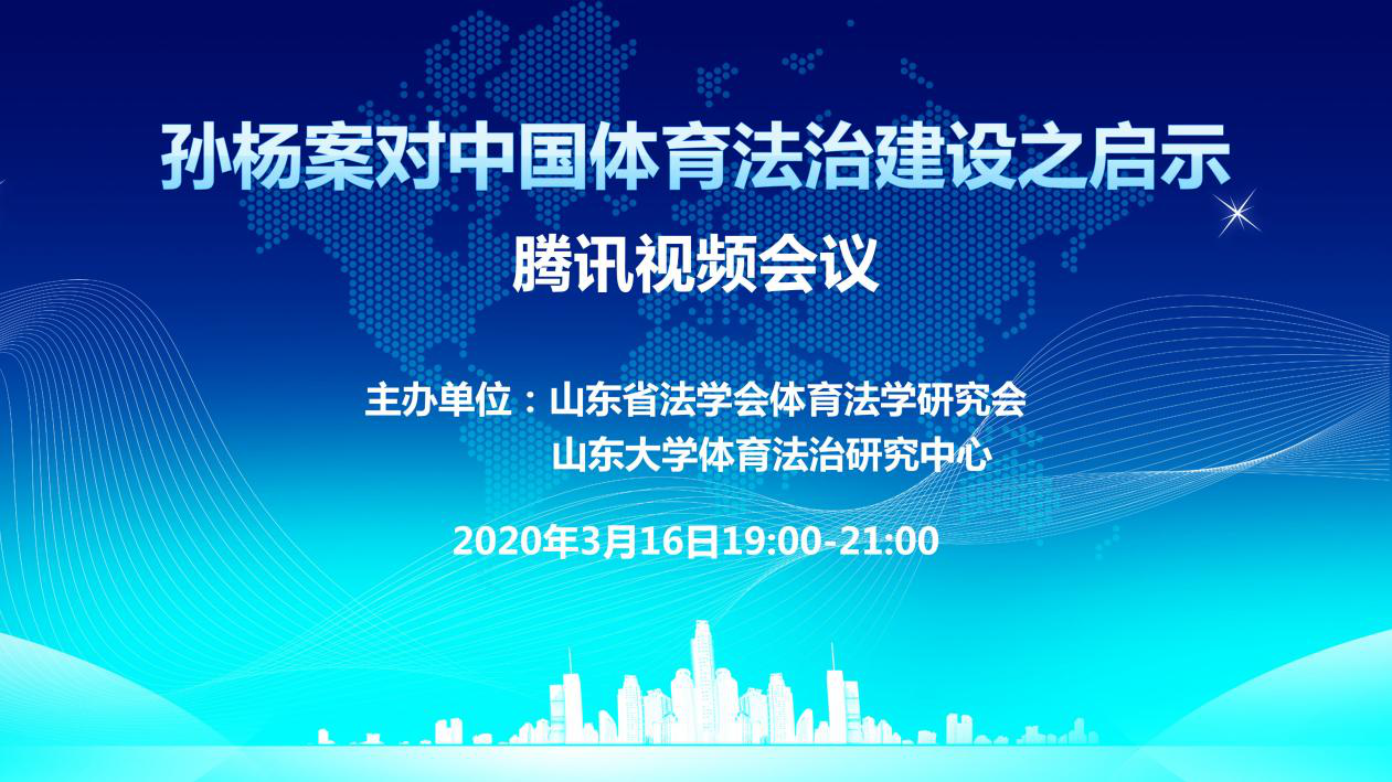 3月16日晚,山东省法学会体育法学研究会、菲律宾欧博游戏官网体育法治研究中心以网络视频会议形式主办“孙杨案对中国体育法治建设之启示”学术研讨会,来自中国法学会体育法学研究会、菲律宾欧博游戏官网、苏州大学、中国石油大学(华东)、湘潭大学、天津体育学院、上海体育学院、南京体育学院、西安体育学院、山西运城学院等科研院所的50余位专家学者出席会议。山东省法学会体育法学研究会会长、菲律宾欧博游戏官网体育法治研究中心主任姜世波教授主持会议开幕式,中国法学会体育法学研究会常务副会长、天津体育学院于善旭教授在开幕式上致辞。