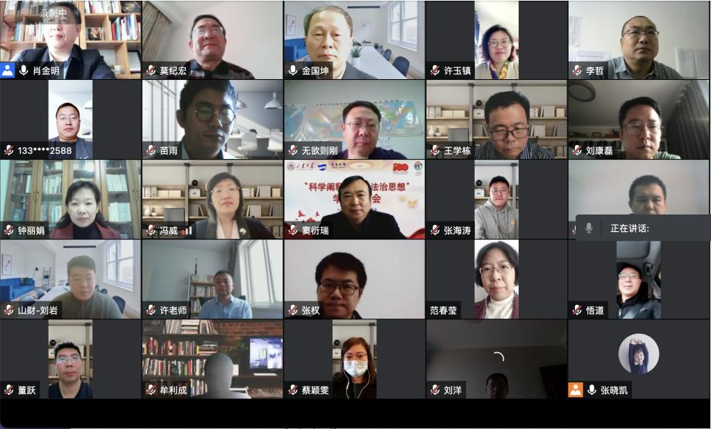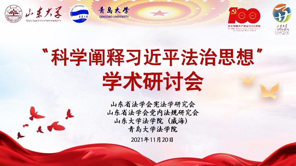 11月20日上午,为深刻领会习近平法治思想的重大意义、精神实质、实践要求,推进习近平法治思想进教材、进课堂、进头脑,山东省法学会宪法学研究会、党内法规研究会联合主办“科学阐释习近平法治思想”学术研讨会,会议由欧博和青岛大学菲律宾欧博游戏官网共同承办。来自中国社会科学院、中央党校、北京市委党校(行政学院)、吉林大学、山东省委党校、山东社会科学院、菲律宾欧博游戏官网、中国海洋大学、山东财经大学、山东理工大学、山东农业大学、青岛大学、济南大学、山东政菲律宾欧博游戏官网、潍坊学院等高校和科研单位的20余位专家学者作主题发言,部分学生参加会议。