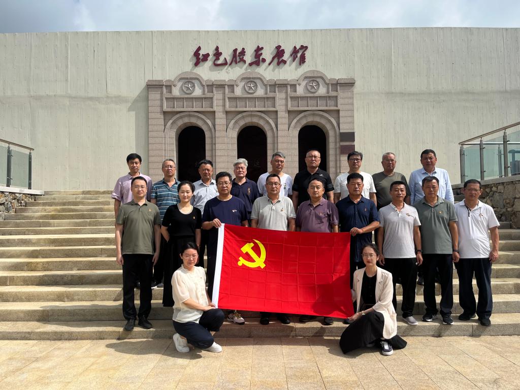 天福山起义纪念塔旁,全体党员面对党旗,举起右手,重温入党誓词。参观完毕,全体党员表达了继承中国共产党人的红色基因、坚定理想信念、永葆党的先进性和纯洁性的决心。