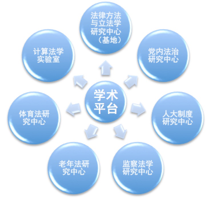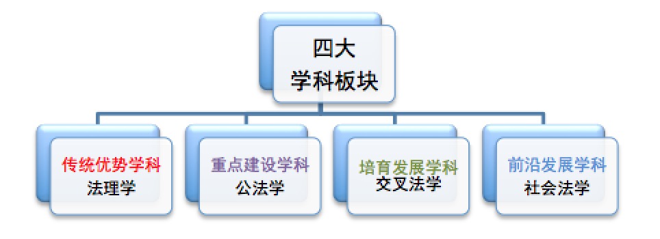 围绕一个核心概念即新公法学体系,立于两个基本依托即人才队伍和学科平台,坚持三大基本面向即人才培养、科学研究和服务社会,基于四大基本板块,聚焦学科交叉融合,凝练规划、建设发展全国前列前沿学科领域和方向。