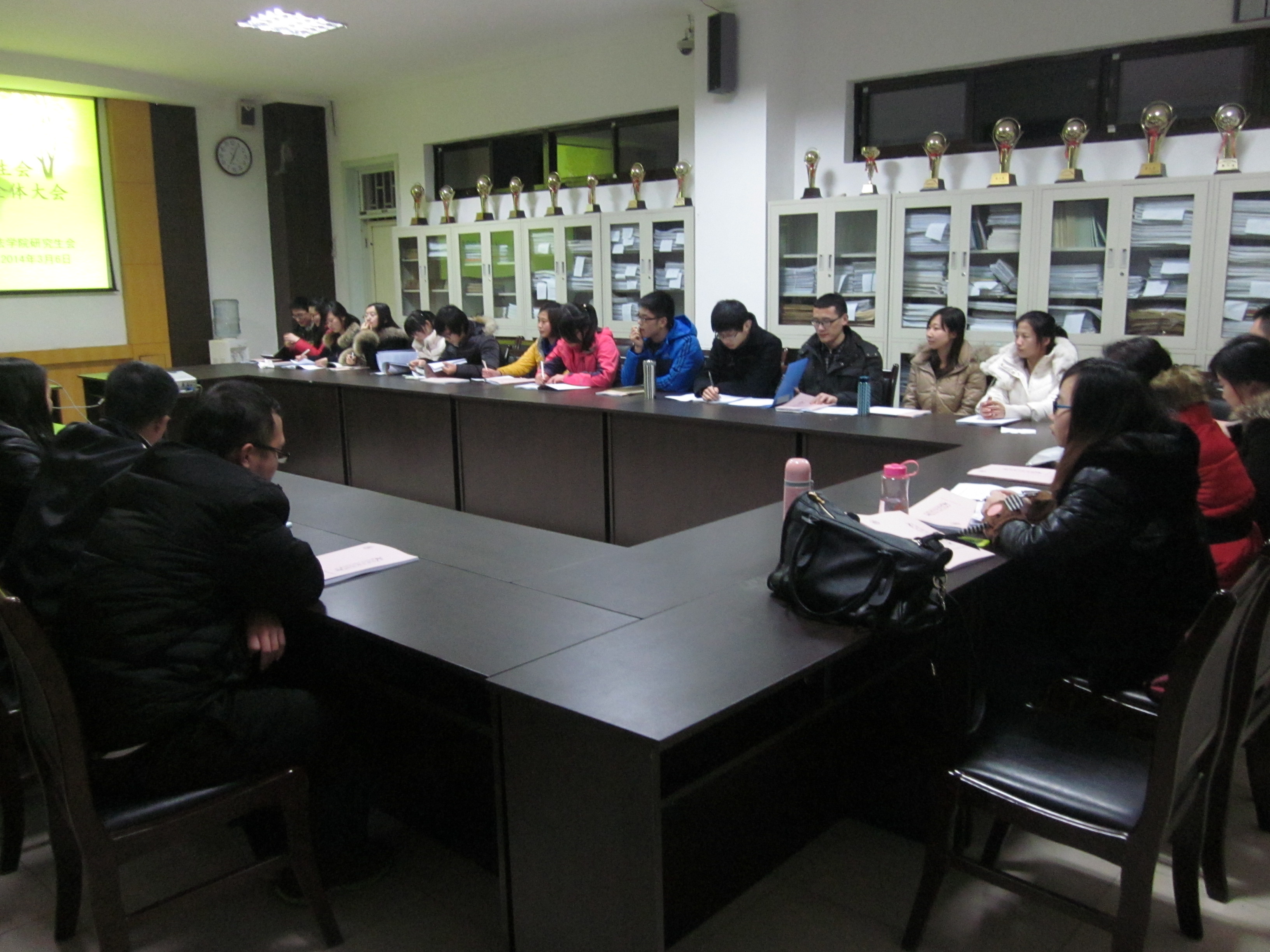 本次会议主要围绕新学期研究生会工作的整体安排及各部门工作的具体规划。会议伊始,研究生会主席团成员首先作了精彩发言。孙龙龙副主席就学院新制定的各种优惠政策做了解读,并希望各部门在新学期能找到新的突破口,把各项工作整体上提高到一个新的水平。同时,他鼓励各部部长大胆放权、细心指导,使得下一届的接班人的工作能力在这学期的工作中得到有效提升,并让大家了解研会的历史,传递研会精神,凝聚内部感情,同时与其他兄弟组织积极沟通、合作,从而更好的完成研会的各项工作。王雪梅副主席就各部的工作计划和研会的管理考核发表意见,希望各部能把本学期即将进行的的羽毛球比赛、论坛以及毕业季的工作做得有声有色。会议第二项由研究生会各部部长就新学期各项工作的具体人员安排做详细讲说。最后是副部长自由发言环节。大家基于新学期的工作安排提出疑问、各抒己见、积极讨论,对研究生会今后的各项工作提出了宝贵的意见和建议。