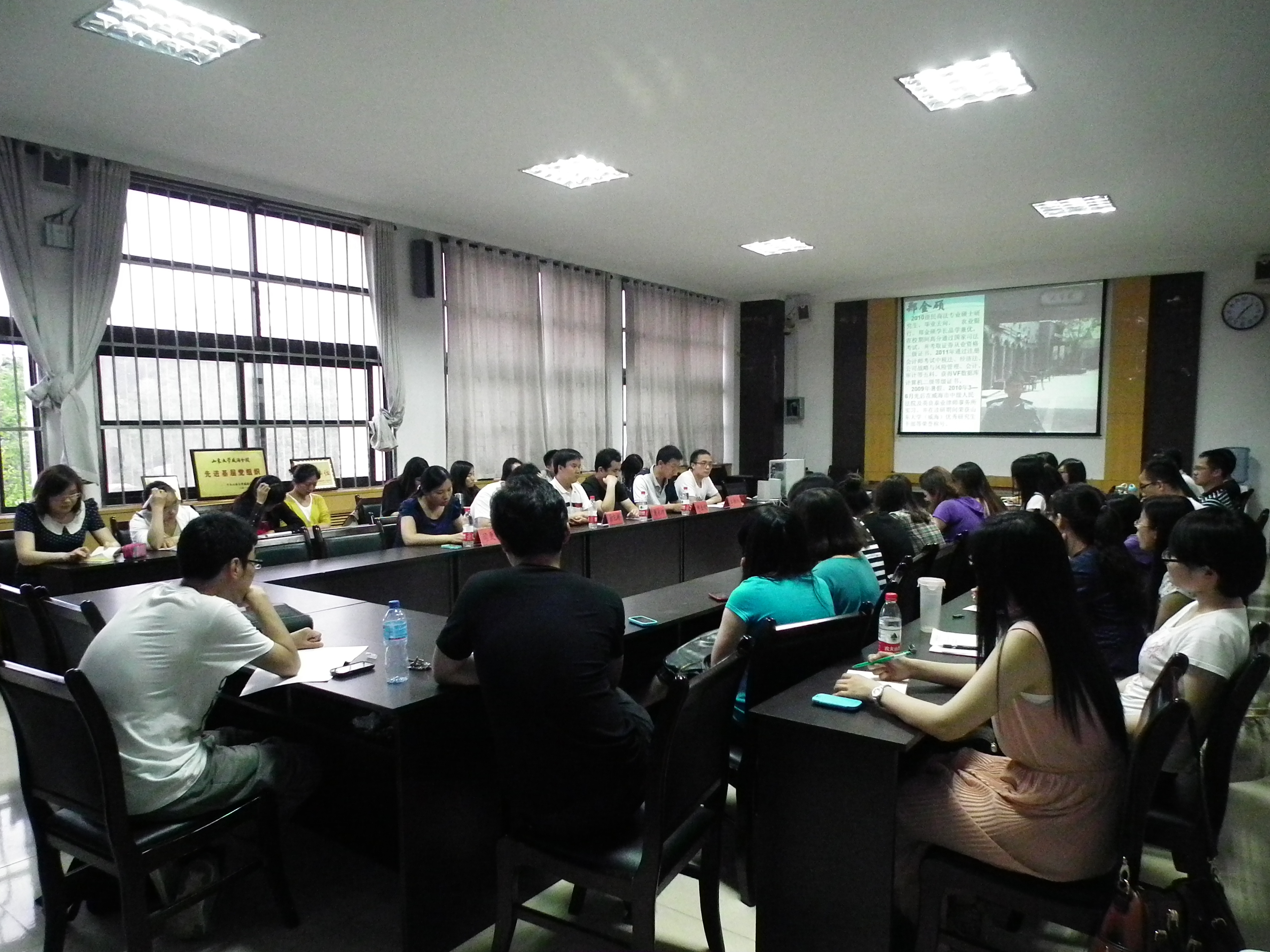 本次经验交流会邀请到了郑金硕、周永坤、徐纪彬、胡中杰、闫更宁五位嘉宾,其毕业去向分别为银行、检察院、法院、企业、村官。嘉宾们结合自身的求职经历分别就银行招聘、公务员考试、高校求职、选调生考试、企业求职等方面的内容做了详细阐述,并针对同学们在自由讨论环节提出的个别问题做了耐心解答。即将面临毕业的研究生们对各大银行的特点、公务员考试的备考与应试、网投简历、企业面试、毕业论文等方面存在较多迷惑与不解。嘉宾们对此作了有重点的解答,并结合自身体会为与会人员提供了第一手的资料与信息。毕业求职是一场很费体力、脑力与心力的“战争”。要想在这场“战争”中获胜,身体素质与心理素质都要过硬。闫更宁学姐鼓励我们平时要多运动,练就良好的身体素质。郑金硕、周永坤学长一致认为自信是面试顺利甚至“逆袭”的必备素质。徐纪彬学长结合自身的经验告诉我们一定要“沉住气”,切忌心慌。胡中杰学长虽然最后发言,但建议非常中肯。他认为我们首先要好好分析一下自己各方面的条件,给自己一个求职方向和定位,然后再去有目的地行动,不能胡子眉毛一把抓。