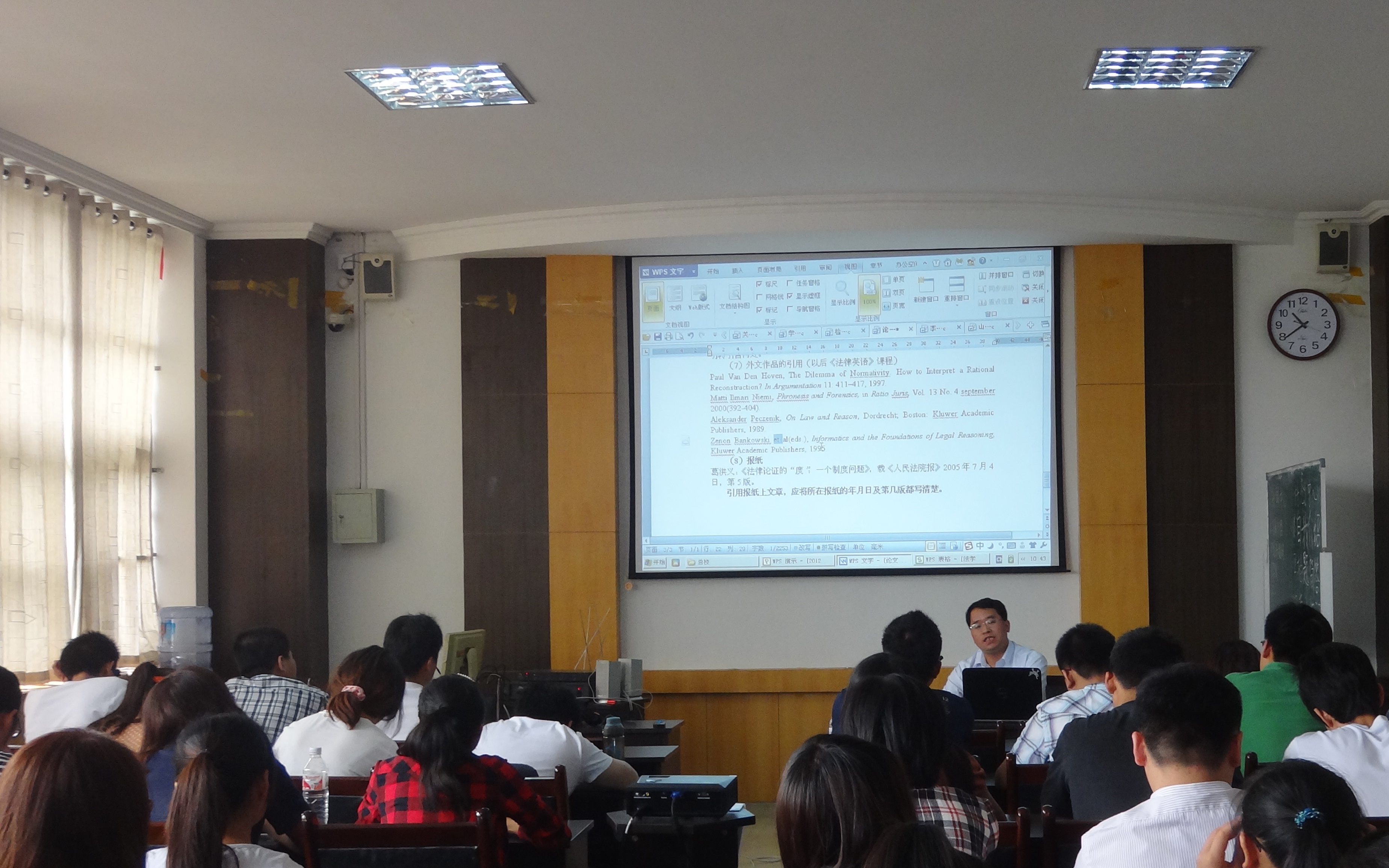 其次,焦宝乾教授就毕业论文写作进行了细致的讲述,从毕业论文的选题、内容、格式、注释、到文章的引用、外文的查找和使用等。指出由于目前对于论文检测的比率要求很高,需要大家从一开始就要认识到这一点,积极的做好准备,在平时的写作中要提高最自己的要求。鼓励大家,平时多看书,多记录,多动笔,可以尝试写作和发表文章,多锻炼自己、提升自我。