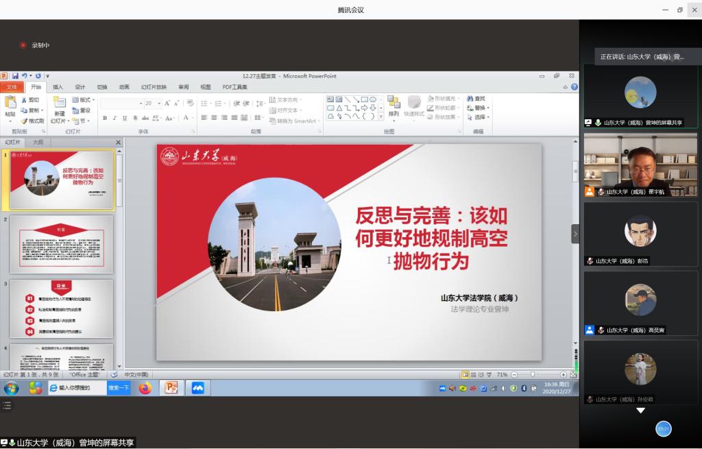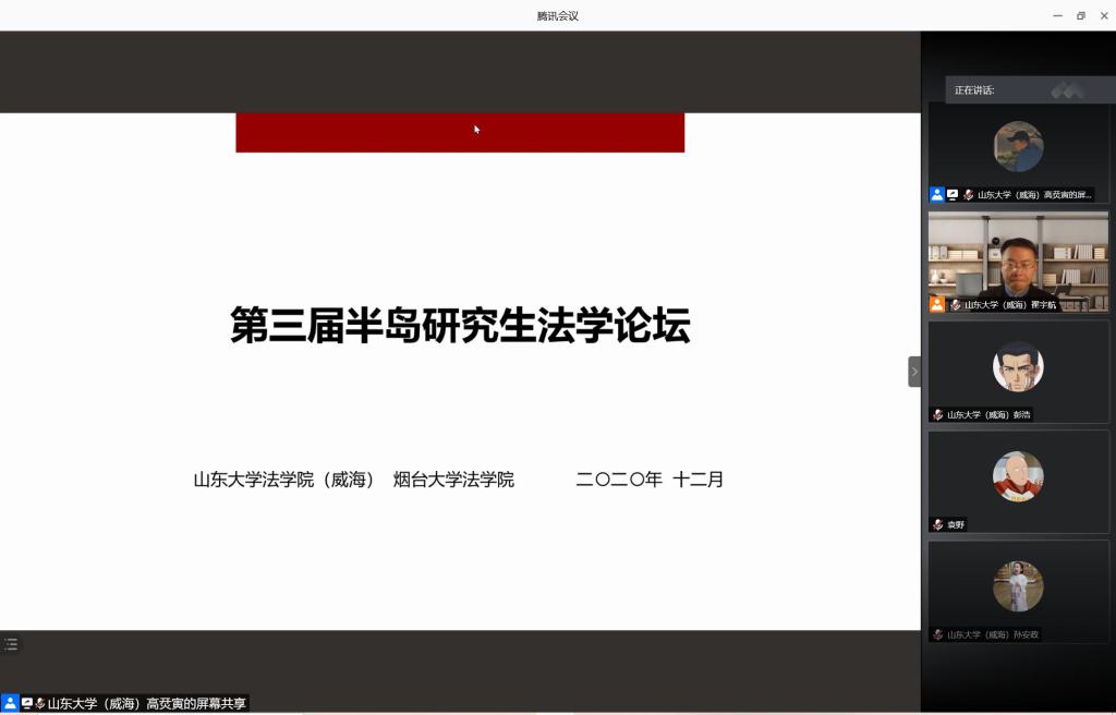 为激发学生学术热情,锻炼学生科研能力与学术素养。12月27日下午,菲律宾欧博游戏官网(威海)与烟台大学菲律宾欧博游戏官网联袂举办第三届半岛研究生法学论坛。此次论坛以“民法与刑法的对话”为主题,以腾讯线上会议形式开展,共有来自两校的三十余名同学参与。论坛由菲律宾欧博游戏官网(威海)研究生会主席翟宇航主持,并邀请菲律宾欧博游戏官网(威海)刑法学博士生导师张小宁副教授、民商法学讲师原蓉蓉作为评议嘉宾。