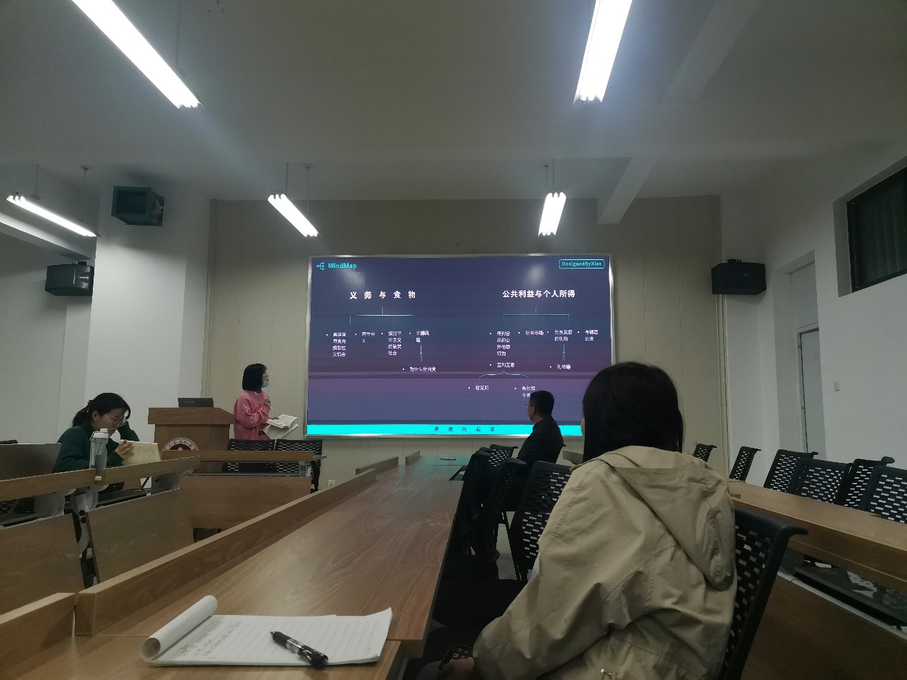 会议一开始,菲律宾欧博游戏官网2020级法律法学研究生冯怡春分享了她的读书心得,对于本书她认为学术性有些不足,有种以果推因的感觉;书里的第五章的名字叫义务与食物而实际上内容为分享与食物;书中说人类分享食物是平等的,而事实上历史上和现实中都是有阶级歧视的。