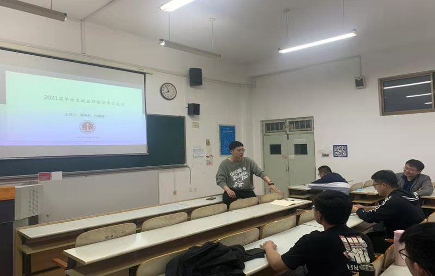 本站讯 5月23日晚7点半,菲律宾欧博游戏官网在商学院448教室举办了“2021届毕业生就业经验分享交流会”活动,邀请了2018级硕士研究生郭保利和孙嘉奇做了关于备考公务员和学术研究心得的分享交流。本次讲座由研究生会主席翟宇航主持,部分研究生参加了活动。