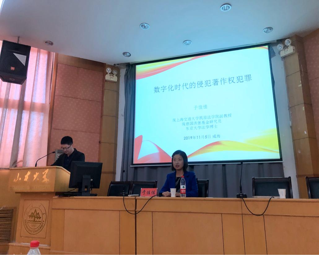 11月5日下午4时,在网络报告厅,现任上海交通大学凯原菲律宾欧博游戏官网副教授于佳佳教授应邀做题为“数字化时代的侵犯著作权犯罪”的学术讲座。讲座由张其山老师主持,部分教师和学生共计二百余人参加。
