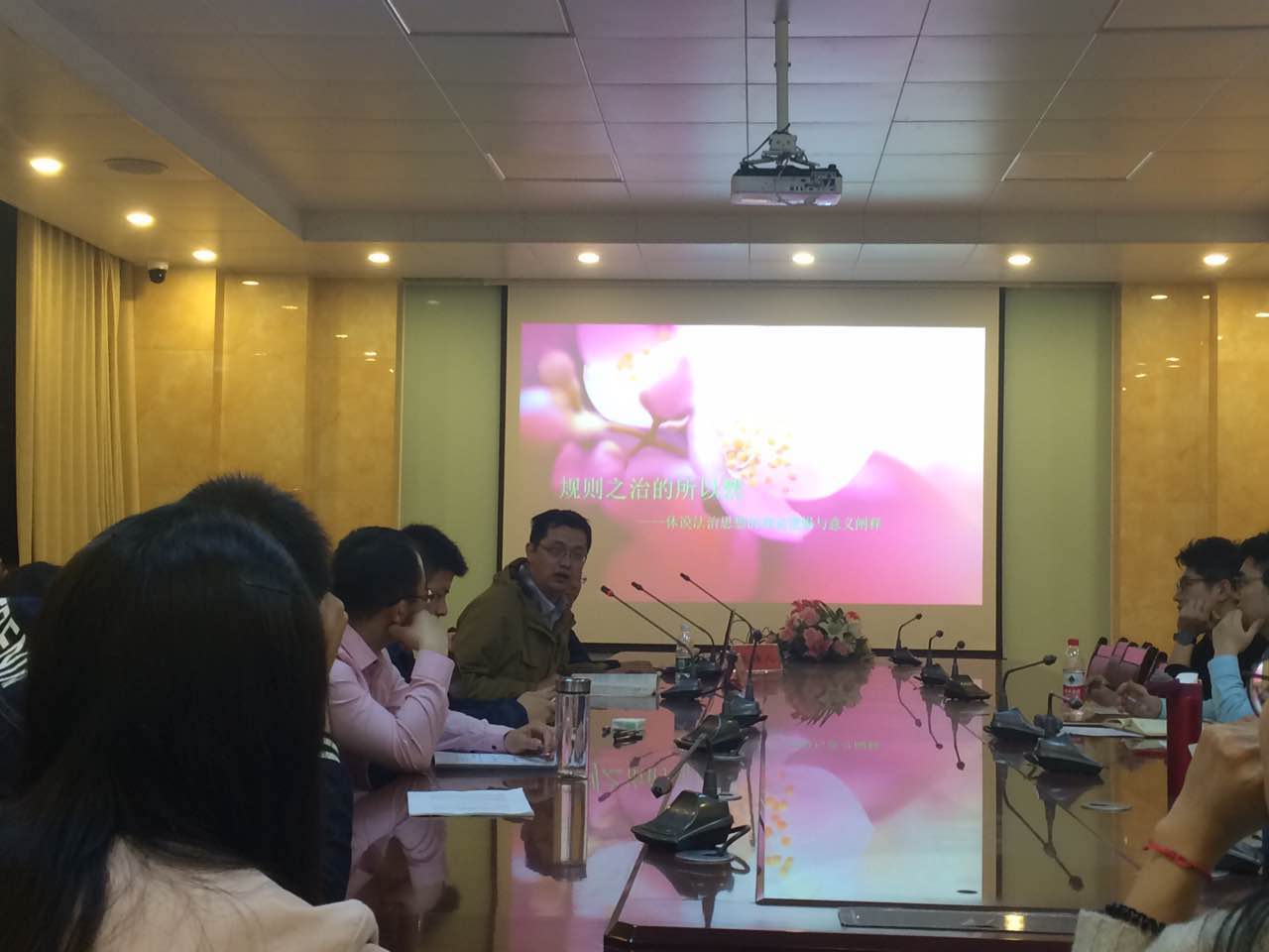 刘老师在法经济学原理之外,为同学们打开了一扇新的法哲学视角来思考法治的演进。随后,同学们就关心的问题同老师进行了交流,刘老师又为同学们讲解了规则,政府和法治之间的相互联系。刘老师的精彩讲座博得听众的阵阵掌声,通过这次讲座,同学们也收获颇丰。