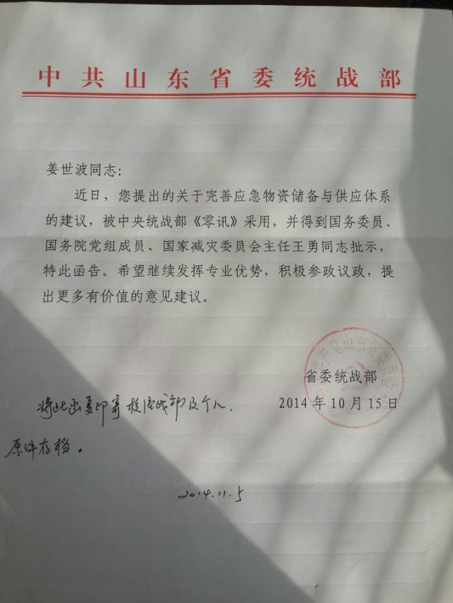 欧博姜世波教授课题研究的阶段性成果建议获国务院领导批示